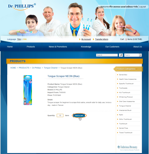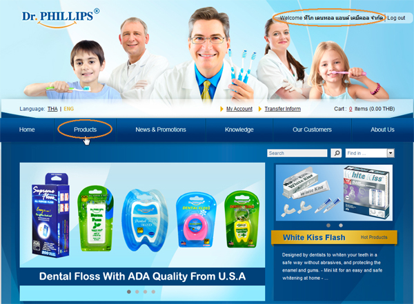 3. You will be back on main page and your name will display on the upper right, The next step is click at "Products" for view product list.