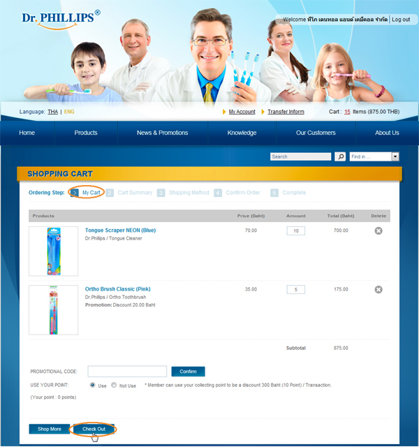 7. You will enter "My Cart" screen that show all chosen items and total amount before discount, and you can edit or delete on item, The next step is click at "Check Out"