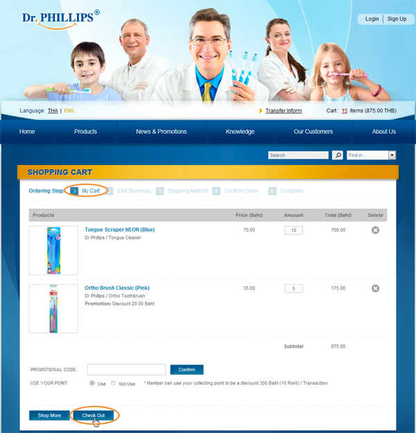 5. You will enter "My Cart" screen that show all chosen items and total amount before discount, and you can edit or delete on item, The next step is click at "Check Out"