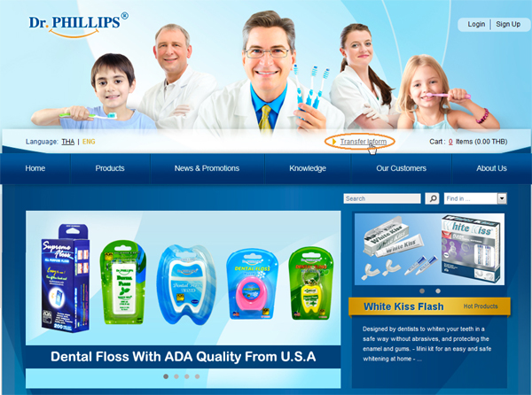 1. When you're already transfer money, you can inform us through website immediately by click at "Transfer Inform" (if you can not inform through website, please send the pay in slip to Tego Dental & Chemical Co., Ltd. by e-mail or fax at 662 538 8505 and please inform your order number and your name.)