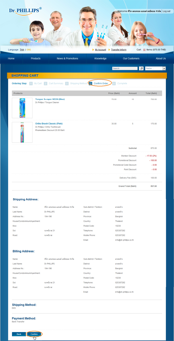 10. You will enter "Confirm Order" screen that show all detail, The next step is click at "Confirm", Then your order will send to us and you will receive our mail to notify your order (sometime our mail go into "junk mail")